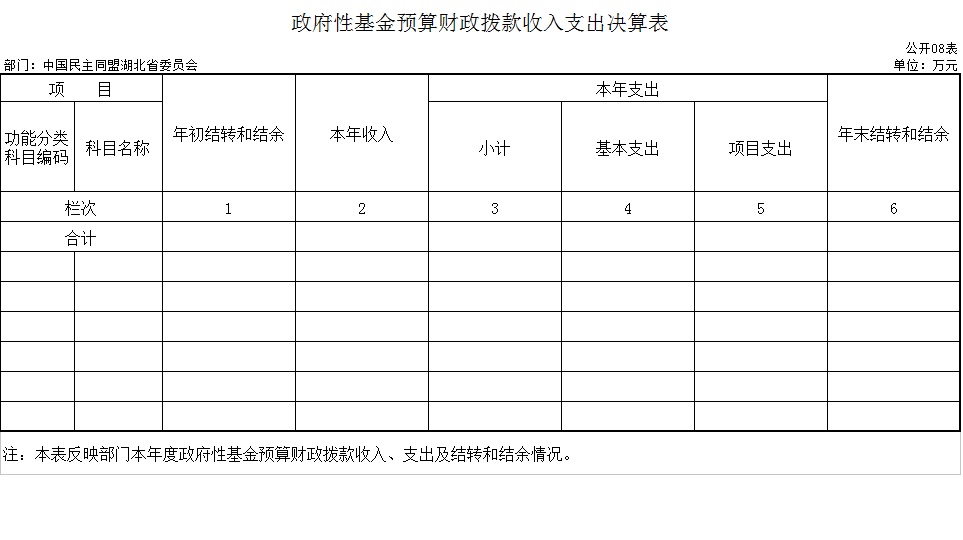 8、民盟湖北省委员会政府性基金预算财政拨款收入支出决算表(公开08表)