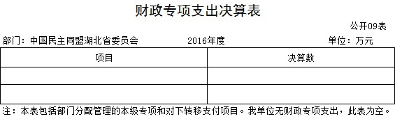 9、民盟湖北省委员会财政专项支出决算表(公开09表)