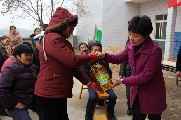 活动中,民盟黄冈市委为该村4户五保户、28户低保户送来大米、食用油、棉被、大衣等慰问物资,在寒冬时节为贫困户送来冬日的温暖。主委陈少敏还带领盟市委委员将大米、食用油、棉被、大衣一份份送至由于行动不便和高龄老人的五保户家中,并询问关心他们的生活情况和需求。