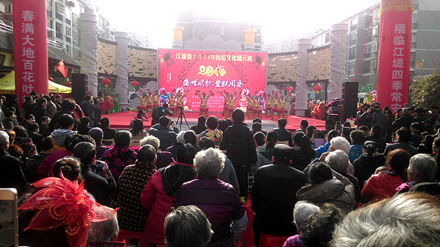 2月20日,汉阳区江堤街在江欣苑社区举行“2016年民俗文化闹元宵”活动,来自该街道的13个社区千余名居民欢聚一堂共庆佳节。由民盟武汉市委选送的国家一级演员、武汉汉剧院侯宝耀先生表演了单口脱口秀《戏说穆桂英救夫》,受到社区群众热烈欢迎。(民盟武汉市委)
