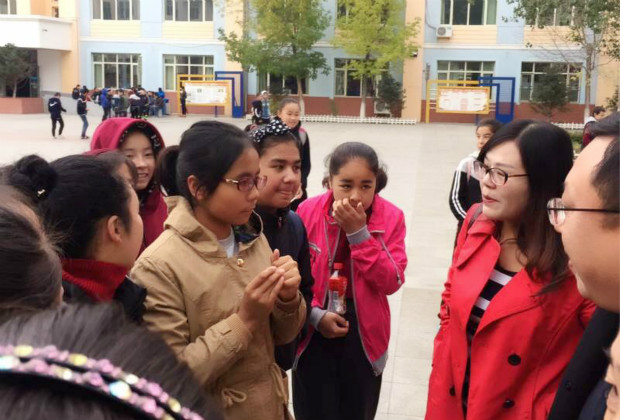 施婧等教师向疆内初中班学生和家长宣传了国家的惠民政策,讲述了内地领导和老师们对新疆学生的亲切关怀和关心帮助,希望广大新疆学子在祖国的家庭里实现人生梦想。