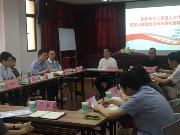 6月15日上午,民盟江岸区工委主委邱化明参加了区民政局组织的实地调研社会组织孵化基地,对社会组织孵化基地建设工作进行视察。座谈时,邱化明主委建议,要多阶层参入,多单位联动,多角度布局。让社会组织与基层党建结合,让社会组织与多元共治结合,让社会组织与志愿服务结合。(民盟武汉市委)