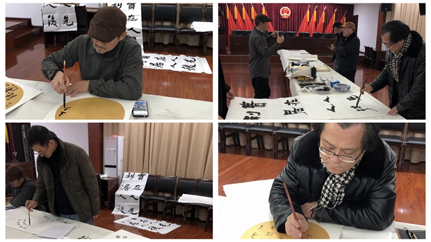 当前位置:首页 > 市州传真为了深化“不忘合作初心,继续携手前进”主题教育活动,民盟宜昌市委组织民盟中央美术院的部分书法艺术,在民主党派机关二楼会议室开展民盟先贤语录诵读与书法笔会。6书法名艺术家们克服年关繁忙,饱含对盟组织的热爱和对民盟先贤的敬仰之情,诵读民盟先贤张澜、沈钧儒、陶行知、李公朴、闻一多、梁漱溟、费孝通等语录先贤语录48条。大家一致感到每一条语录都饱含着民盟先贤的家国情怀、民主精神、治学境界,诵读中陶冶了情操,提升了境界。