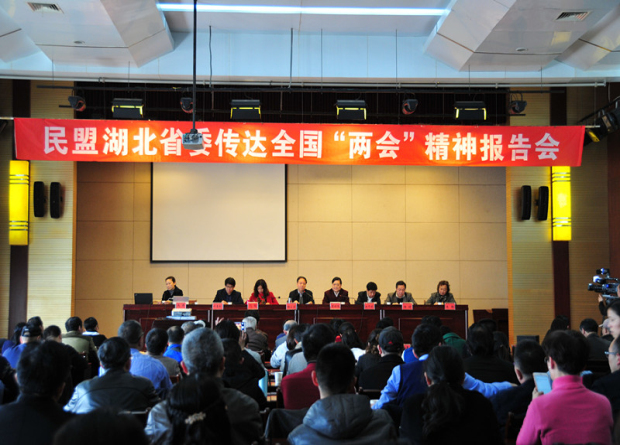 3月23日,民盟湖北省委传达学习全国“两会”精神报告会在省民主党派大楼11楼会议厅举行。湖北省副省长、全国政协委员、民盟省委主委杨云彦,民盟省委副主委黄利鸣、马骏、赵作斌、叶春松、杨超、秘书长朱梅,民盟省委常委及省直基层组织盟员代表近150人参加会议。