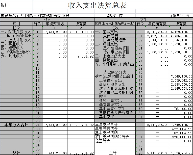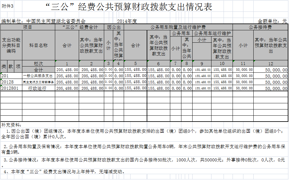 当前位置:首页 > 通知公告根据《省委办公厅、省政府办公厅关于做好省级部门预算决算公开工作有关事项的通知》(鄂办发电[2014]17号)和《省财政厅关于批复2014年度省直部门决算的通知》(鄂财行发[2015]53号)要求,经民盟湖北省委领导同意,现将本单位2014年度部门决算和“三公”经费决算进行公开。