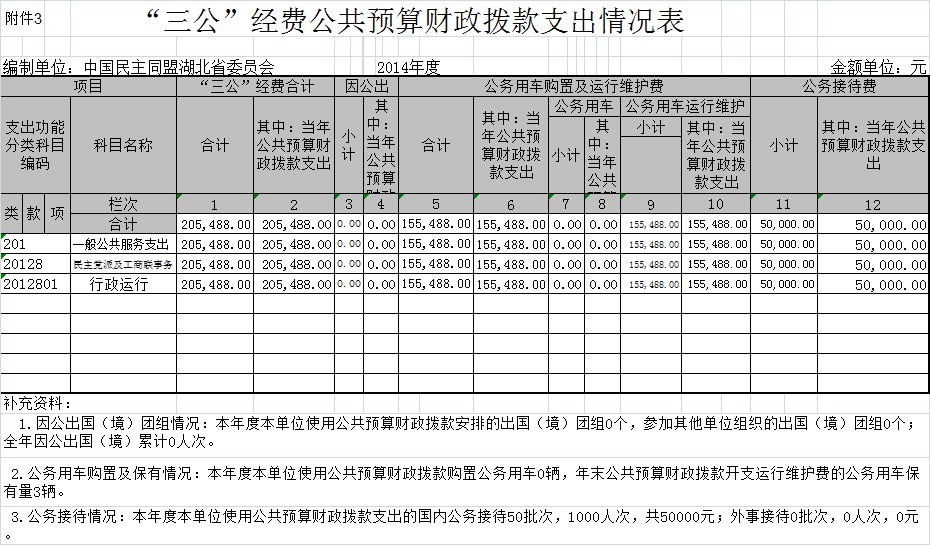 3、部门2014年“三公”经费公共预算财政拨款支出情况表