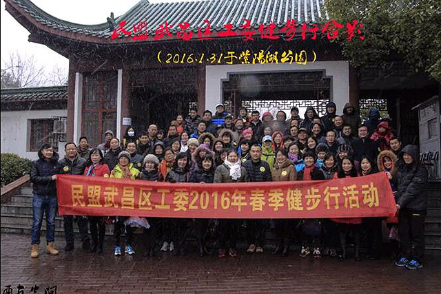 1月31日,民盟武昌区工委组织全区近100名在职盟员参加迎新春健步行活动。中共武昌区委统战部副部长王政波应邀出席。虽然下了大雪,天气寒冷,但是大家依然踊跃报名,在雪中欣赏紫阳湖的美景。