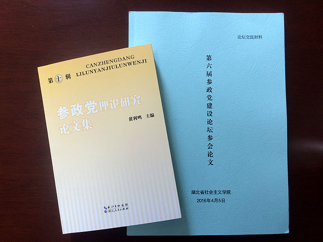 民盟武汉市委调研室副主任彭水平主笔的《民主党派信息能力建设研究》一文入选省参政党理论研究论文集,调研室杨艳华主笔的《在新形势下提高人民政协的协商议政能力的研究》入选第六届参政党建设论坛参会论文集。(民盟武汉市委)