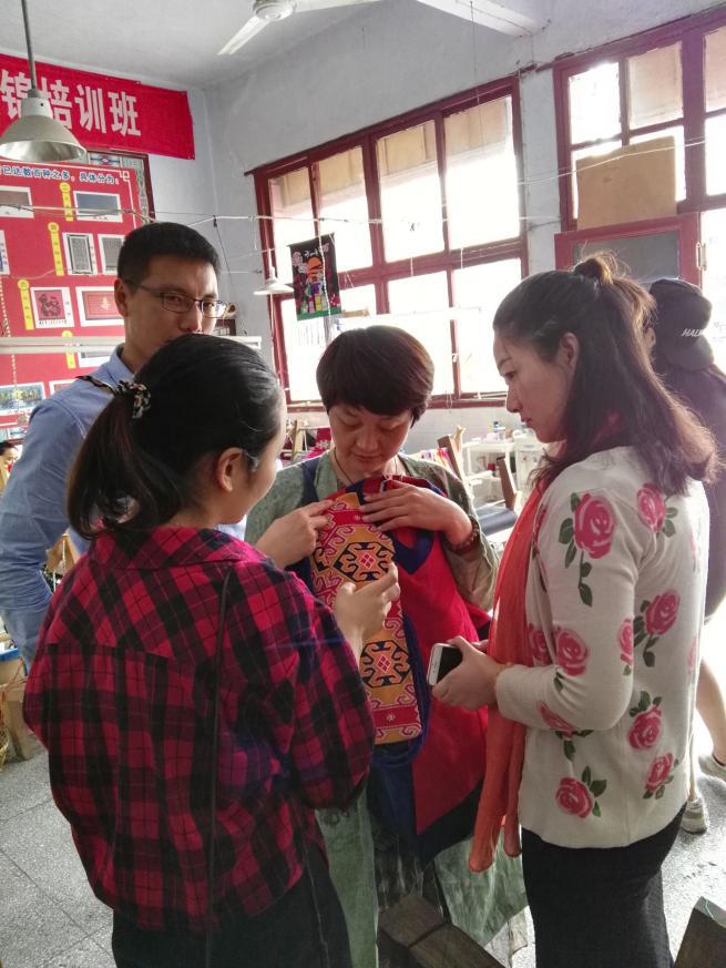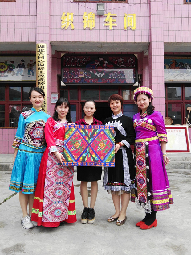 当前位置:首页 > 基层动态4月29号上午,民盟湖北工业大学支部来到来凤县翔凤镇,在湖北省同心温暖工程武陵山区土家织锦培训基地开展帮扶活动。来自湖北工业大学支部的艺术设计专业的教师们就“西兰卡普图案与土家文化”进行了深入沟通和职业培训,活动深受女工欢迎和好评。