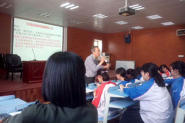 当前位置:首页 > 基层动态5月11日下午,在武汉市任家路中学科技楼四楼阶梯教室里,青山区教研室中学语文科、区属各初中学校语文教师与该校初三(七)班学生齐聚一堂,在民盟青山区委教育支部副主委黄世民老师的引导下,交流讨论着元调、四调的语文试卷中大阅读部分的选文特点与出题特点。