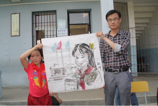 生在穷村有人访。中湾小学彭亮向前来捐书送画的民盟书画家介绍:中湾小学教学环境有限,师资编制欠缺,多数老师要带几门课,一星期课时多达22节,但面对70%是留守儿童的中湾小学,老师选择的是坚守,是责任,是希望。而今天民盟鄂州市委向我校捐赠的价值两千余元的书籍,师生们是看在眼里,记在心上。这些乡村留守儿童,一个个活泼可爱,一本好书、一幅好画可以改变他们的命运,点亮放飞梦想的心灯。