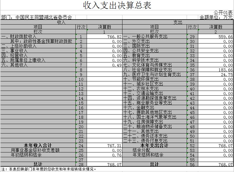 1、民盟湖北省委员会2016年收入支出决算总表(公开01表)