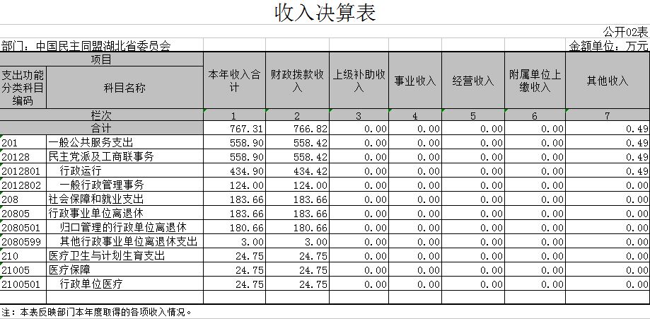 2、民盟湖北省委员会2015年收入决算表(公开02表)