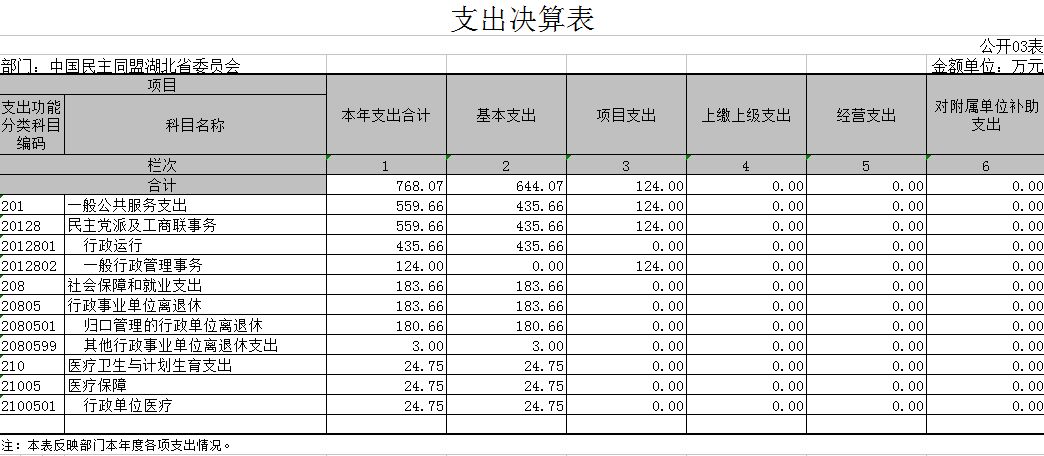 3、民盟湖北省委员会2015年支出决算表(公开03表)