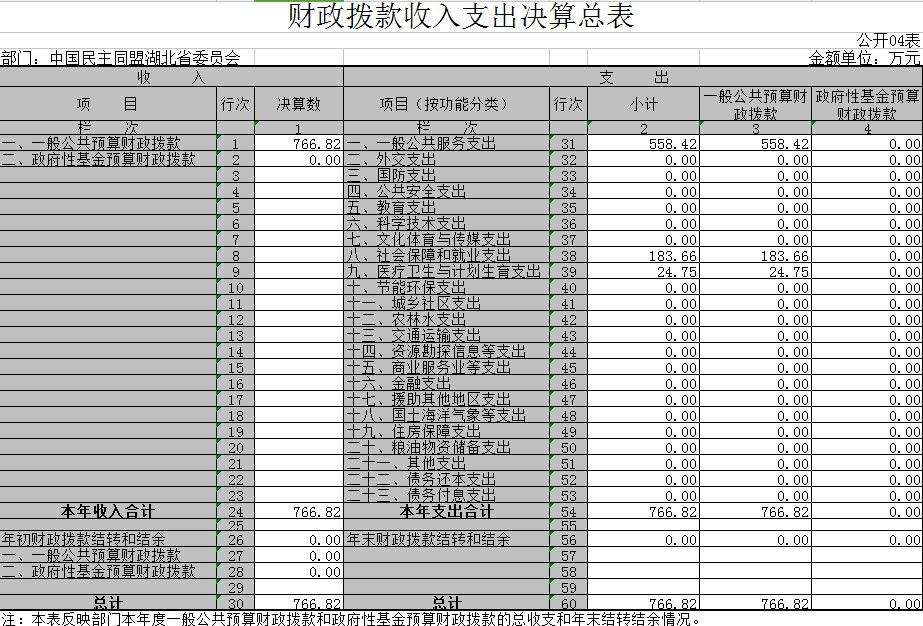4、民盟湖北省委员会2015年财政拨款收入支出决算总表(公开04表)
