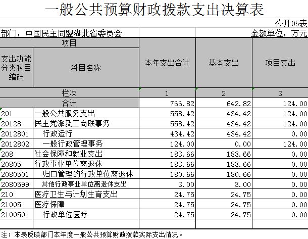 5、民盟湖北省委员会2015年一般公共预算财政拨款支出决算表(公开05表)