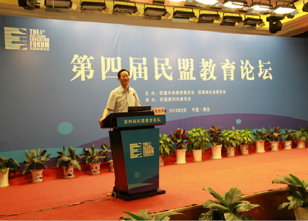 民盟湖北省委专职副主委受郭生练主委委托致辞。致辞中说,湖北作为传统的教育大省、教育强省,近年来围绕基础教育公平和创新发展做了大量的工作、出台了一系列相互配套、操作性强的政策措施、遴选出一批基础教育示范性特色专业群,积极推动了湖北基础教育特色专业群的建设。在大力促进基础教育均衡发展方面,湖北通过“两个500所”计划,努力改善农村学生的学习生活条件;通过教育信息化,使山区学校也能享受到优质的教育资源;通过“专项计划”,累计为一万余名贫困地区考生提供上大学的机会;与此同时湖北在全国率先出台《乡村教师支持计划》大幅提升农村学校师资力量;通过完善普通高中经费保障机制,破解高中发展困境。此次论坛将为湖北的教育发展传经送宝,对推动我国基础教育发展起到积极促进作用,意义深远。