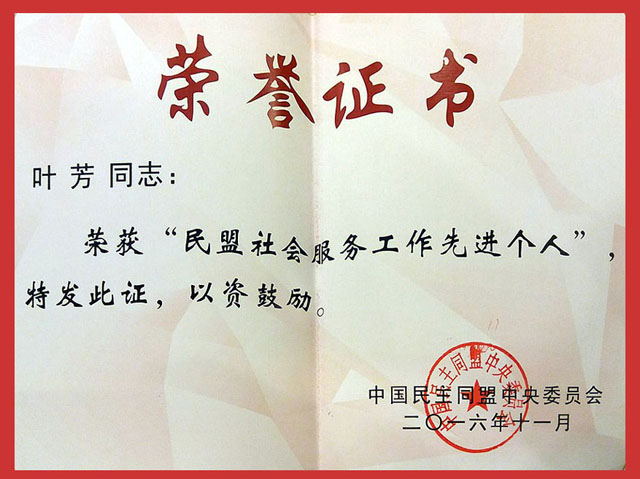 会议对在盟务工作方面作出突出成绩的各基层民盟组织和个人予以表彰。民盟武汉市委荣获民盟中央坚持和发展中国特色社会主义学习实践活动先进集体,民盟湖北省委参政议政、组织工作先进集体称号,盟员叶芳荣获民盟中央社会服务先进个人称号。