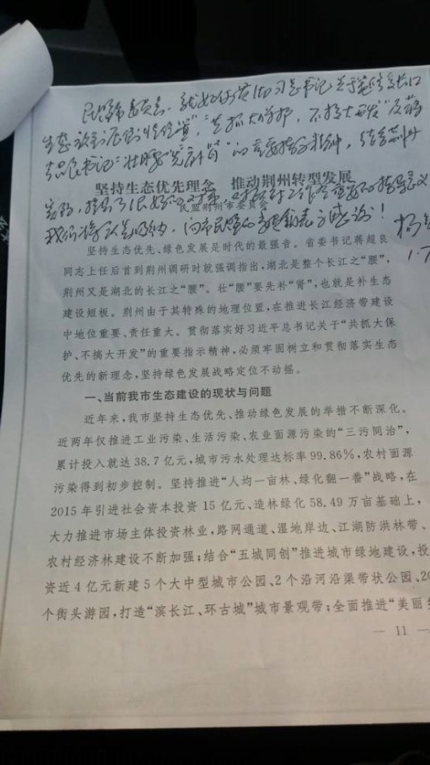 对民盟荆州市委会提出的《坚持生态优先理念,推动荆州转型发展》,杨智批示:“民盟市委会就如何贯彻习总书记关于把修复长江生态放到压倒性位置,‘共抓大保护,不搞大开发’,及省委蒋良超书记‘壮腰先补肾’的重要指示精神,结合荆州实际提出了很好的对策,对政府工作有很重要的指导意义,我们将认真吸纳,向市民盟的委员们表示感谢!”