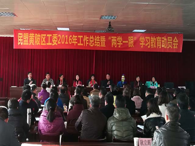 当前位置:首页 > 基层动态1月13日下午,民盟黄陂区工委召开2016年工作总结暨“两学一跟”学习教育动员会。民盟武汉市委专职副主委陈彩凤、区委统战部常务副部长刘换文出席会议。会议由民盟黄陂区工委主委汪利珍主持,区工委60余位盟员参加会议。