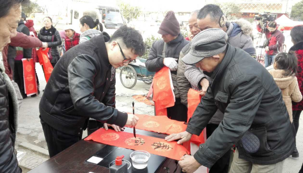 近日,民盟襄阳襄城区总支组织盟员王振萌到襄城区卧龙镇开展“送温暖赠春联”活动,免费为卧龙镇的居民们书写春联,吸引不少上街购买年货群众排队领取春联。此次活动深受当地百姓欢迎。(方莉)