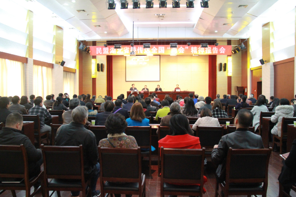 当前位置:首页 > 省盟要闻 3月16日,民盟省委传达学习全国“两会”精神报告会在党派大楼11楼会议室召开。全国人大代表、副省长、民盟省委主委郭生练,全国政协委员、省卫计委主任、民盟省委副主委杨云彦,全国政协委员、民盟省委副主委、民盟武汉市委主委胡树华,全国政协委员、华中科技大学教授冯丹出席会议并传达全国“两会”精神。省直基层组织140位盟员代表及民盟省委全体机关代表参加大会。会议由民盟省委专职副主委王耀辉主持。