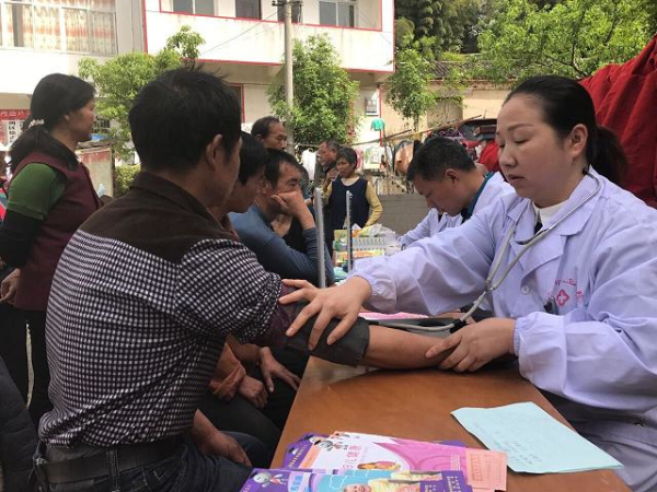 4月18日,新洲区人大常委会组织全区市区两级卫生系统人大代表,前往偏远革命老区徐古街柳河村开展义诊活动。