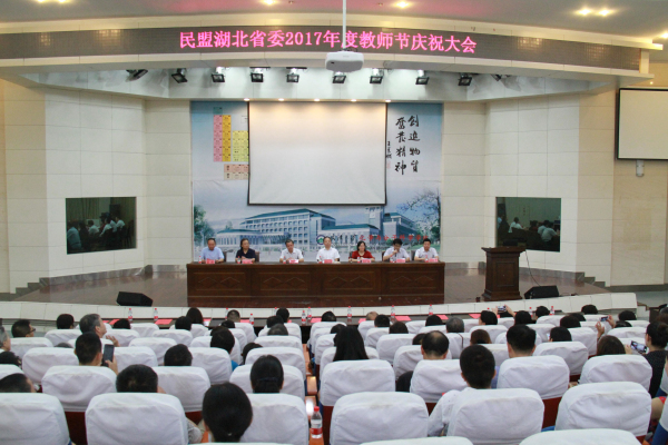 当前位置:首页 > 省盟要闻 9月8日,民盟湖北省委在武汉大学举办了教师节庆祝活动。民盟省委主委杨云彦、副主委叶春松、秘书长朱梅出席,武汉大学党委副书记赵雪梅应邀出席会议并致辞,武汉大学统战部部长蒋锁奋出席会议。民盟省委常委、教育专委会主任左明章,省委常委郭鹏、姚海林及省直在汉基层组织的100多位盟员参加会议。民盟省委教育专委会副主任周游宣读了民盟省委致全省盟员教师和教育工作者的慰问信。