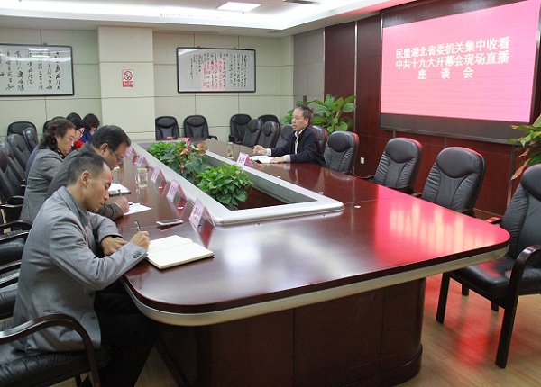杨主委指出,“十九大”的召开,是一次开辟新局面的时代盛会,标志着我国发展站到了新的历史起点上,中国特色社会主义进入了新时代,翻开了崭新的一页,必将写下浓墨重彩的一笔。“十九大”报告,是站在历史和时代的高度,深刻阐述了中共十八大以来中国共产党和国家事业发生的历史性变革,深刻阐述了新的历史条件下坚持和发展中国特色社会主义的一系列重大理论和实践问题,提出了一系列重要思想、重要观点、重大判断、重大举措。报告思想深刻、内涵丰富,脉络清淅、系统完备,全面总结了五年来从改革发展稳定到内政外交国防、到治党治国治军全方位、开创性的成就和深层次、根本性的变革,展现了中国特色社会主义的新局面。报告阐明了未来五年甚至更长时期党和国家发展的大政方针,提出了具有全局性、战略性、前瞻性的行动纲领,开启了全面建设社会主义现代化国家新征程,统一了思想、凝聚了共识,激励全党全国各族人民决胜全面建成小康社会,夺取中国特色社会主义伟大胜利,为实现中华民族伟大复兴的中国梦不懈奋斗。