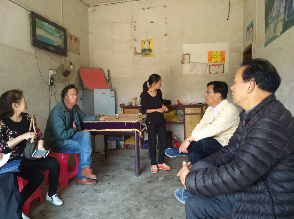 图为调研组长、民盟省委原专职副主委王耀辉与因病致贫农户面对面交谈