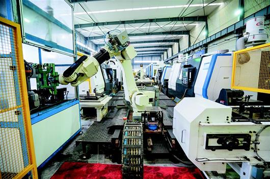 图为:谷城县三环工业园内,国内首条转向节智能制造生产线投产。(陈勇 摄)