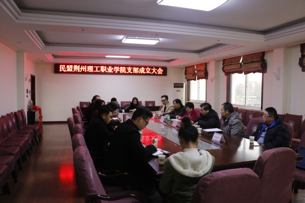 会议由民盟市委委员吴世金同志主持,盟市委专职副主委谭文首先宣读了《关于成立民盟荆州理工职业学院支部的决定》,并任命高元华同志为校支部主委、邱洪涛同志任校支部组织委员,张宇强同志任校支部宣传委员。杨春磊代表民盟各基层组织为支部成立致贺词。