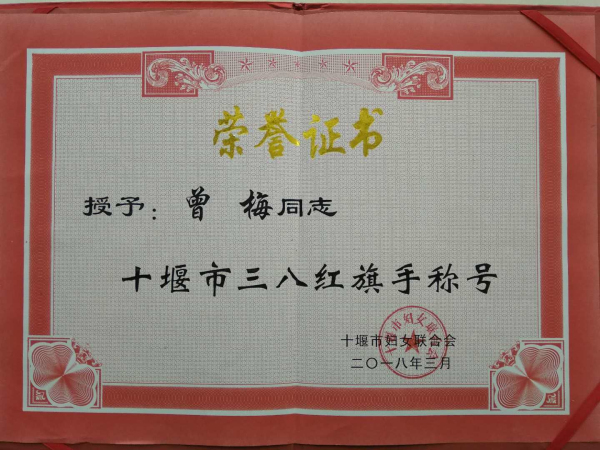 民盟综合支部曾梅同志荣获"十堰市三八红旗手"称号。