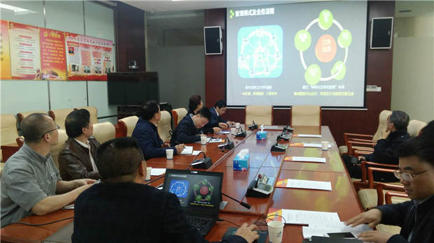 考察组在荆门市社会管理和数字化城市管理监督指挥中心考察城市管理数字化平台建设情况并座谈。