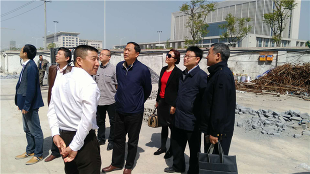 考察组实地察看在建中的荆门市智慧城市管理中心。