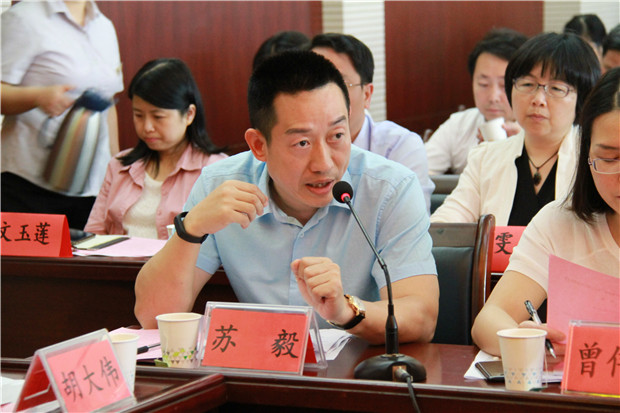 民盟省委副主委黄利鸣主持座谈会,盟员代表张小军、王四清、杨应玖、苏毅、王芙蓉、胡大伟分别在座谈会上作了发言。