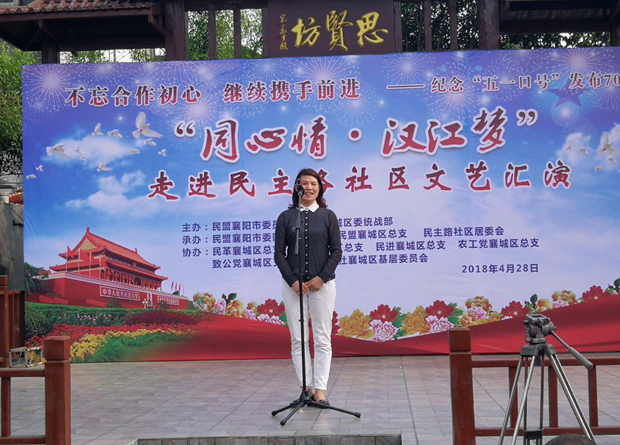 当前位置:首页 > 市州传真4月28日,“同心情•汉江梦”纪念“五一”口号70周年文艺演出活动在襄阳市襄城区民主路社区举行,此次活动由民盟襄阳市委和中共襄城区委统战部联合主办,民盟襄阳市委同心艺术团和民盟襄城区总支承办。市政协副主席、民盟市委主委尚瑾,中共市委统战部副部长薛传武,中共襄城区委常委、统战部部长李明胜,湖北文理学院、襄阳职业技术学院、襄阳汽车职业技术学院统战部领导,全市各民主党派副主委等领导参加了活动。