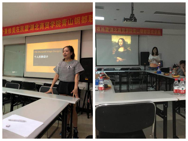 此次活动的主题为“内外兼修美在民盟”,由湖北商贸学院艺术与传媒学院的两位盟员教师进行主题讲座。服装系何璐瑶老师作“个人形象设计”讲座,介绍分析了个人形象设计的重要性及在不同场合下着装的注意事项;环境设计系李娜老师作世界名画《蒙娜丽莎》的解析讲座,通过讲解使钢都支部盟员们对这幅耳熟能详的作品有了更进一步的了解。讲座期间,大家踊跃提问,积极讨论,气氛活跃。最后,民盟省直新阶层钢都支部主委苏毅作总结发言,肯定了此次活动的积极作用,并期望双方的联谊交流活动可以持续开展下去。