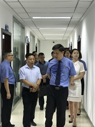 何义发和参加仪式人员参观了12309检察服务中心,详细了解中心配套设施、功能区域,便民设备等。