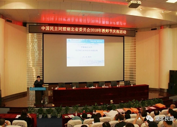 在第34个教师节到来之际,9月7日,民盟湖北省委在中国地质大学(武汉)举办教师节庆祝活动。副省长、民盟省委主委杨云彦,民盟省委副主委杨超、专职副主委朱梅,民盟省委常委、教育工作委员会主任左明章,民盟中国地质大学(武汉)委员会主委魏昌华出席庆祝活动。中国地质大学(武汉)党委书记何光彩应邀出席庆祝活动并致辞,中国地质大学(武汉)党委副书记唐辉明、统战部部长唐勤等出席。民盟省直基层组织及民盟武汉市委近200名盟员教师代表参加了庆祝活动。