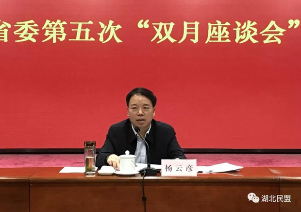 当前位置:首页 > 省盟要闻 10月18日,中共湖北省委举行双月座谈会,围绕“强化基层医疗卫生服务体系,推进健康湖北建设”工作,听取各省级民主党派、工商联和无党派人士意见、建议。会议由湖北省人民政府副省长杨云彦主持。民盟省委副主委马骏、叶春松、陈少敏、朱梅,民盟省委常委、武汉大学药学院郭鹏教授,民盟省委委员、湖北大学国际交流学院副院长张海谋教授,民盟省中医院支部主委、湖北省中医院肾病专科主任金劲松教授参加座谈会。会上,省卫生计生委主任刘英姿就全省基层医疗卫生服务体系建设进展情况作介绍。省农工党、省民革、省民进、省致公党、省九三学社代表分别作了发言。