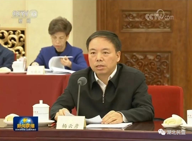 全国政协委员、民盟中央常委、湖北省人民政府副省长、民盟湖北省委主委杨云彦在会上发言。(宣传部)