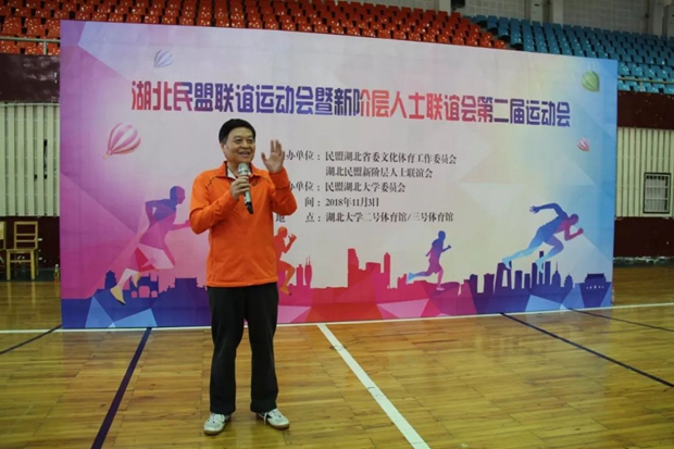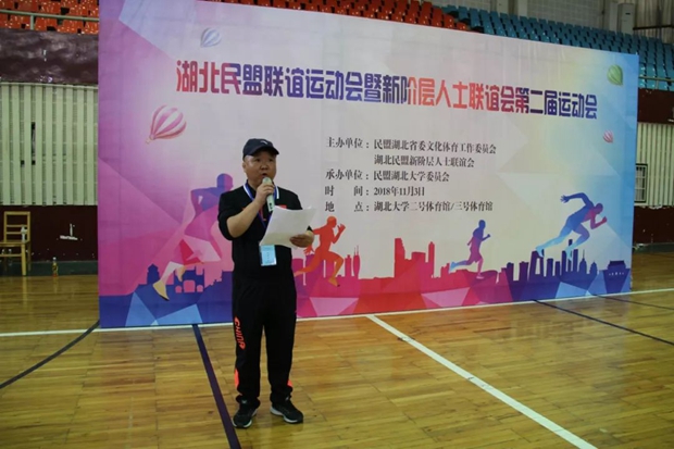 民盟省委文体专委会副主任、民盟武汉体育学院支部主委田勇作为本次运动会总裁判长宣读比赛成绩。