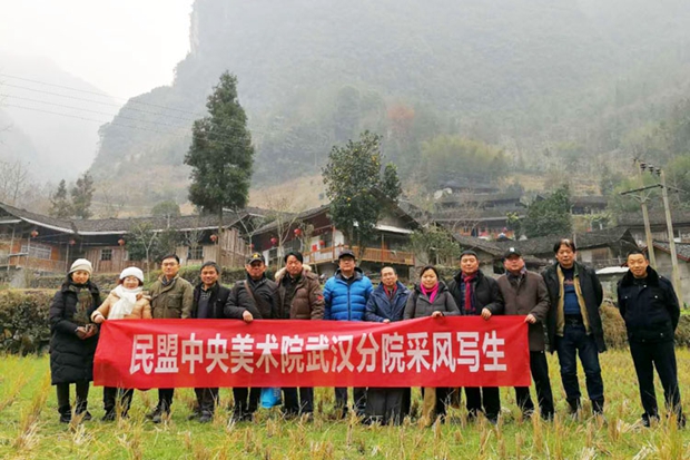 当前位置:首页 > 市州传真12月12日至16日,民盟中央美术院武汉分院院长徐协桥,副院长卢家平、高文琪、王指明及部分艺术家来到在宣恩高罗、伍家台、彭家寨等地采风写生,感受这里的自然美,人文美,用自己手中的笔墨描绘了不一样宣恩风情。