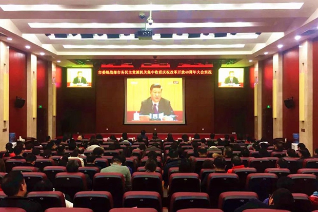 当前位置:首页 > 市州传真12月18日,庆祝改革开放40周年大会在北京隆重举行。中共中央总书记、国家主席、中央军委主席习近平出席大会并发表重要讲话。民盟武汉市委秘书长秦英巍及全体机关干部参加了市直统战部门和市各民主党派机关集中收看直播活动。