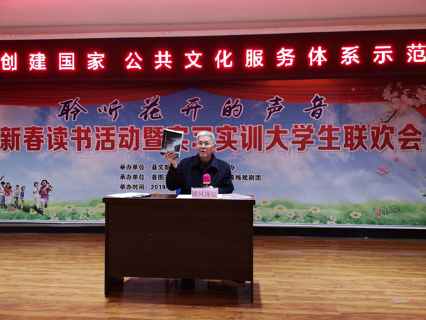 日前,民盟团风支部老盟员詹维东老师,在团风讲坛向近百名全县实习实训大学生们讲红色革命史——“团风战役,解放武汉的前哨战”。(团风民盟)