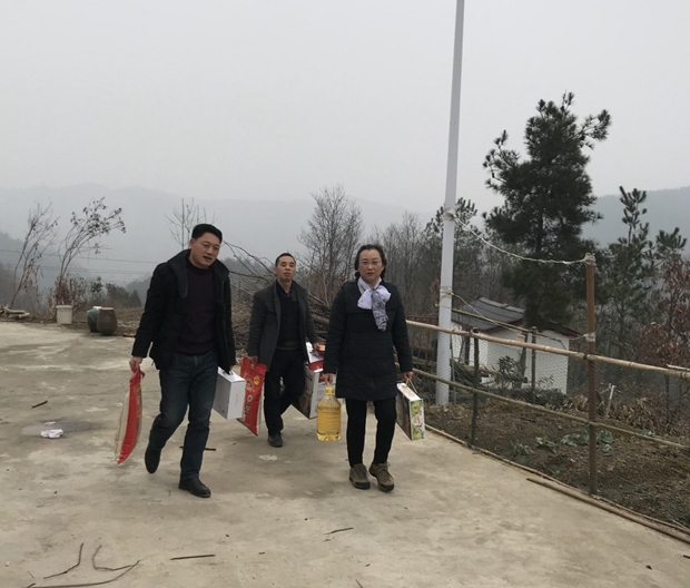 1月20日,受杨云彦主委委托,民盟省委专职副主委朱梅一行4人驱车近7小时赶赴十堰市郧阳区青山镇园岭山村慰问29户特困户。中共十堰市郧阳区青山镇党委书记李明国,党委副书记、青山镇镇长梅秀林,以及园岭山村村委会负责同志参加此次慰问活动。
