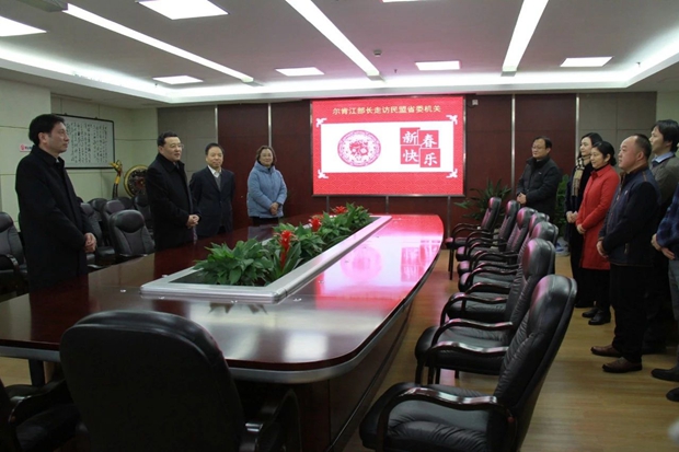 当前位置:首页 > 盟员风采2月11日下午,新年第一个工作日,中共湖北省委常委、统战部部长尔肯江·吐拉洪走访民盟省委机关,给全体机关干部带来了新春祝福。副省长、民盟省委主委杨云彦也专程来到机关看望全体同志,并陪同统战部领导给大家拜年。杨云彦主委代表民盟省委对尔肯江部长一行的关心问候表示感谢。