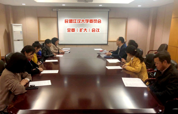 会议学习贯彻习近平新时代中国特色社会主义思想和十九大精神,传达全国两会精神和民盟武汉市委十三届五次全体(扩大)会议精神,重点总结2018年工作和布置2019年工作。2018年,江大委员会和广大盟员在民盟武汉市委的正确领导下,在中共江汉大学党委统战部的直接指导下,认真组织政治学习,高度重视组织建设,积极开展课题调研和参政议政,努力服务社会,取得了显著成绩。2019年工作重点是深入开展“不忘合作初心,继续携手前进”主题教育活动;积极响应盟中央号召,认真开展“弘扬爱国奋斗精神、建功立业新时代”活动;参政议政有新突破。