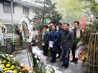 简短开场后,大家向先烈们敬献了花圈,在默哀中缅怀先烈,用诵读的方式表达了自己的心声,硚口区政协委员、民盟武汉市第二十九中学支部主委周军华同志号召大家不仅要铭记英雄烈士,更要传承英烈精神,奋进新时代。最后,大家用敬献亲手制作的小白花,向英烈三鞠躬并绕陵园一周的方式表达了最诚挚的敬意。